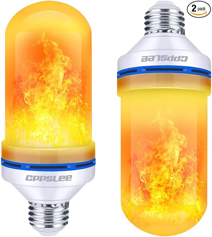 • 🔥Realistic fire effect. Through our continuous testing and improvement, these fire light bulbs present a flame-flickering realistic impact. You screw the bulb into the base of the E26 and enjoy the flame of the LED.